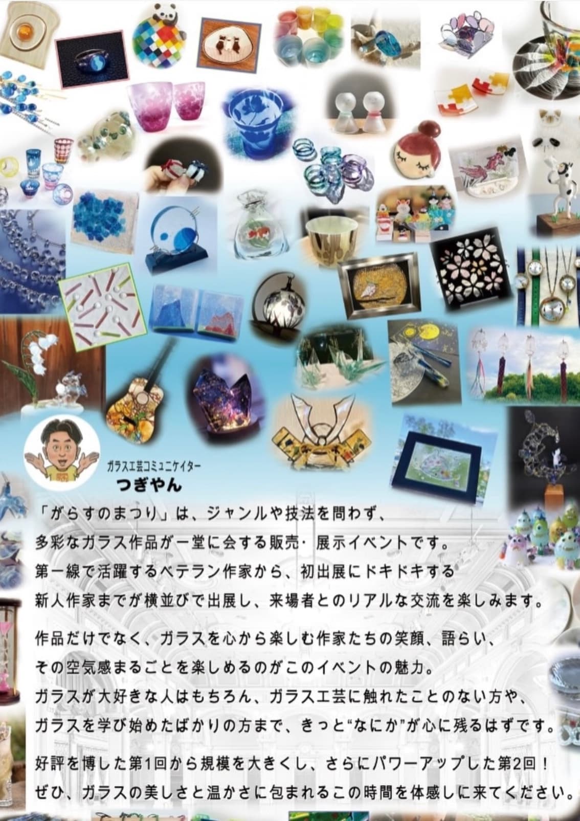 第一線で活躍するベテラン作家から、初出展にドキドキする新人作家までが横並びで出展し、来場者とのリアルな交流を楽しみます。 作品だけでなく、ガラスを心から楽しむ作家たちの笑顔、語らい、その空気感まるごとを楽しめるのがこのイベントの魅力。